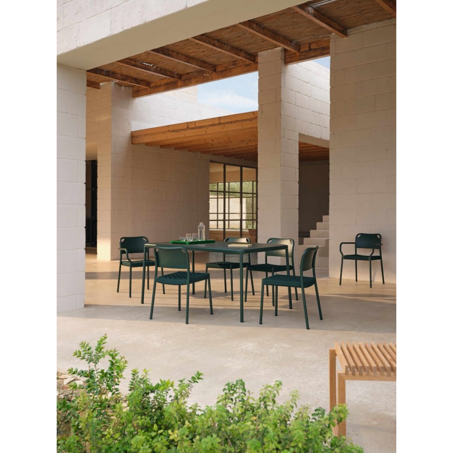 Gracias a su diseño limpio y a sus materiales resistentes, la VIND Table se integra con naturalidad en espacios exteriores domésticos y profesionales. Es ideal para terrazas, jardines, patios o proyectos contract como restaurantes y hoteles.