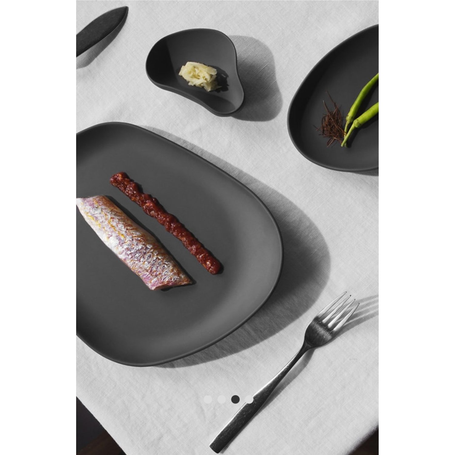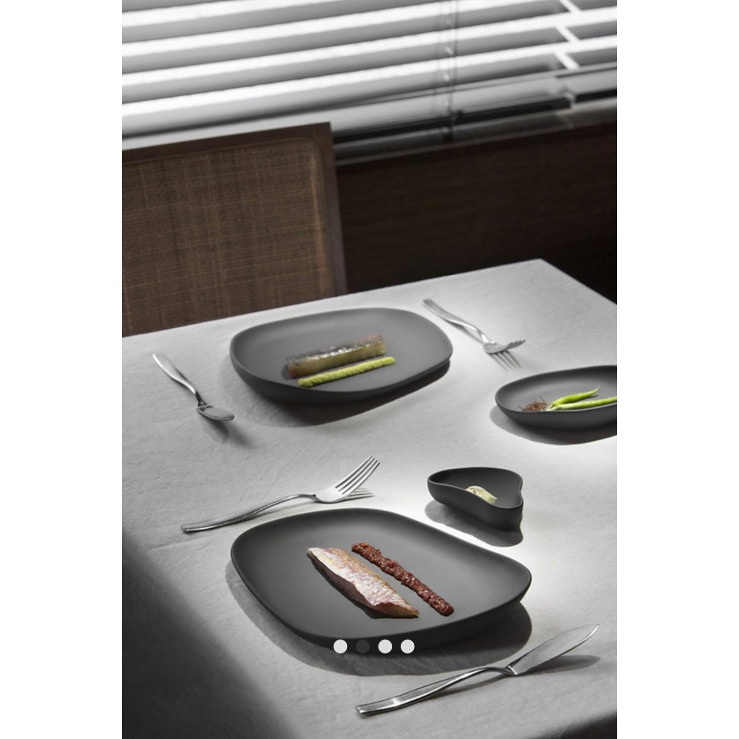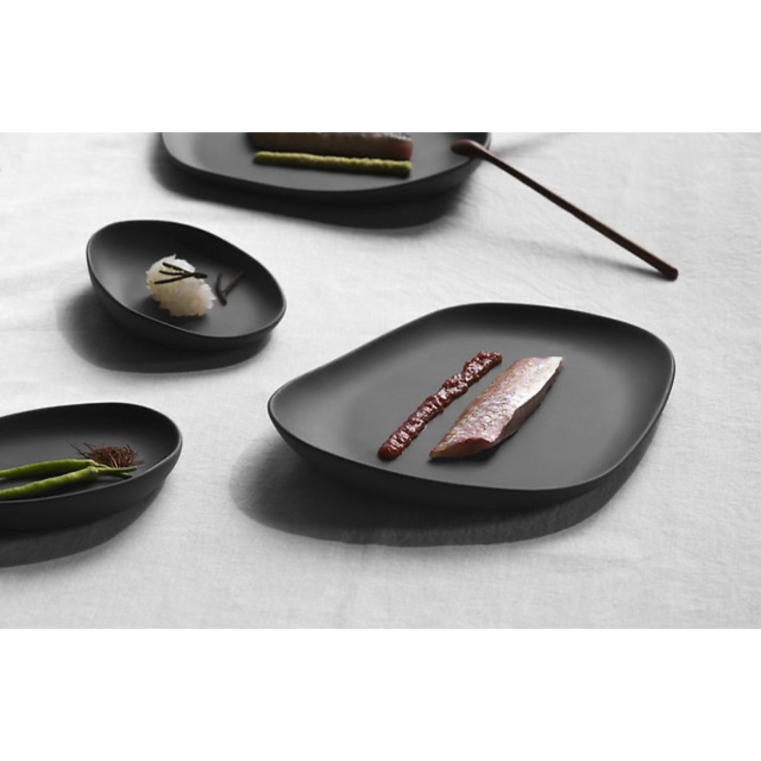 Su acabado en porcelana negra mate (sin esmaltar) aporta un aire minimalista y elegante, convirtiéndolo en una pieza ideal tanto para la alta gastronomía como para mesas con carácter contemporáneo.