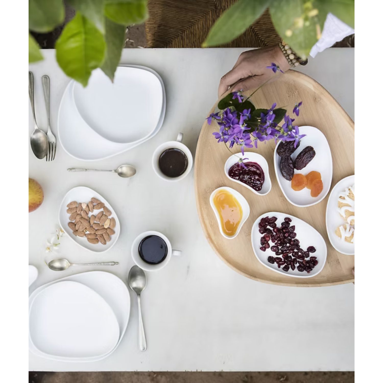 El Yayoi Flat refleja la esencia de la colección Yayoi: piezas con un diseño fluido y asimétrico que evocan la armonía natural y la imperfección bella, invitando a transformar la mesa en una experiencia sensorial y estética única.