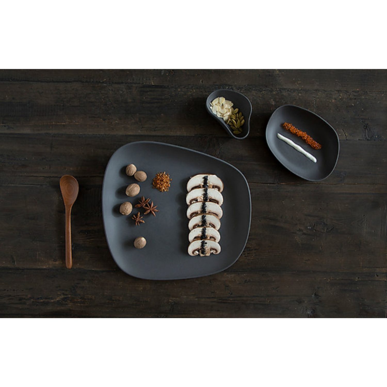 Yayoi Superflat Beltz de Cookplay: plato extra plano en porcelana negra mate inspirado en la belleza natural del diseño japonés.